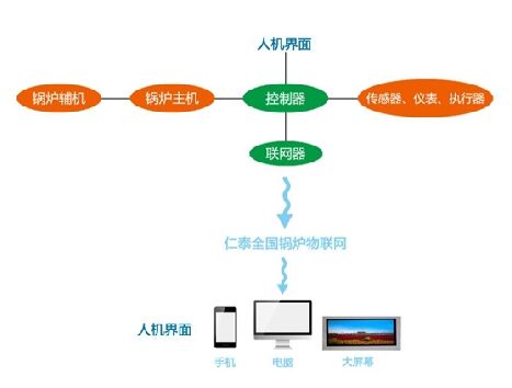 “生態(tài)圈”鍋爐: 在傳統(tǒng)鍋爐的控制器上增加一個(gè)聯(lián)網(wǎng)器,即可實(shí)現(xiàn)鍋爐與仁泰全國(guó)鍋爐物聯(lián)網(wǎng)的聯(lián)網(wǎng),向鍋爐生態(tài)圈內(nèi)的有關(guān)方發(fā)送鍋爐系統(tǒng)信息、接收有關(guān)方的信息,傳統(tǒng)鍋爐即升級(jí)進(jìn)化為“生態(tài)圈”鍋爐(或網(wǎng)絡(luò)鍋爐)。生態(tài)圈鍋爐將傳統(tǒng)鍋爐的人機(jī)界面,從鍋爐使用現(xiàn)場(chǎng)的控制器上面,無(wú)限延伸到手機(jī)、電腦、大屏幕等人機(jī)界面,通過(guò)手機(jī),可以在任何地點(diǎn)、任何時(shí)間得知鍋爐的現(xiàn)場(chǎng)信息,并且與鍋爐生態(tài)圈的有關(guān)方進(jìn)行互動(dòng)。所以生態(tài)圈鍋爐又稱(chēng)“手機(jī)鍋爐”。