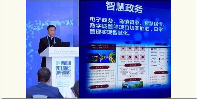 ▲桐鄉(xiāng)市領(lǐng)導(dǎo)在第三屆世界互聯(lián)網(wǎng)大會(huì)介紹“手機(jī)桐鄉(xiāng)”