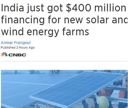 近日,印度可再生能源行業(yè)已獲歐洲投資銀行(EIB)與印度商業(yè)銀行Yes Bank聯(lián)合項(xiàng)目的4億美元投資。