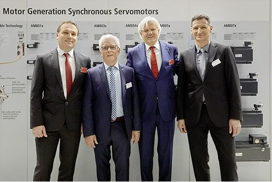 從左至右:Michael Pfister, 德國(guó)倍福自動(dòng)化有限公司驅(qū)動(dòng)技術(shù)產(chǎn)品經(jīng)理;Erwin Fertig,F(xiàn)ertig Motors 公司董事總經(jīng)理兼聯(lián)合創(chuàng)始人之一;Hans Beckhoff,德國(guó)倍福自動(dòng)化有限公司所有者兼總裁以及第二位 Fertig Motors 公司創(chuàng)始人;Dietmar Hamberger,于 2018 年 2 月 13 日新生產(chǎn)線正式啟動(dòng)生產(chǎn)之日起擔(dān)任 Fertig Motors 公司總經(jīng)理。
