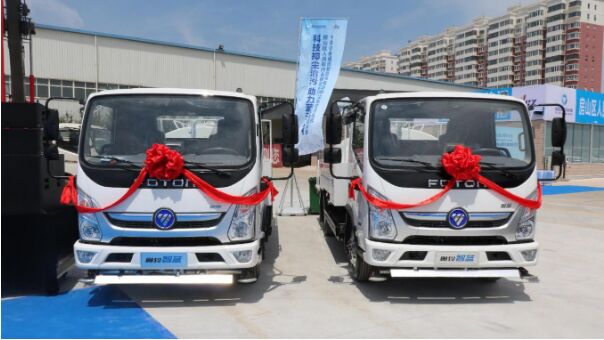 【活動現(xiàn)場準備交付的福田智藍新能源抑塵車產(chǎn)品】