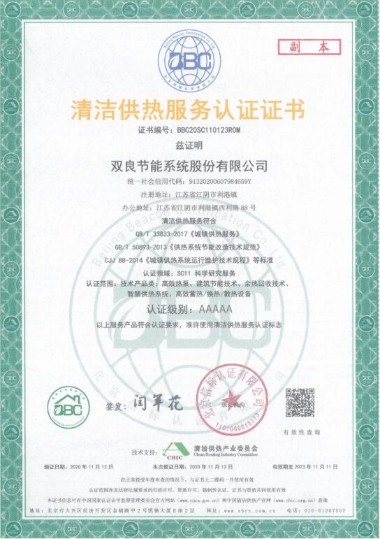 憑借多年在清潔供冷供熱領(lǐng)域的綜合實力雙良節(jié)能成為首批中國清潔供熱產(chǎn)業(yè)“清潔供熱服務(wù)認證”5A級企業(yè)。 此次合作雙良節(jié)能將為實現(xiàn)石家莊市政府碧水藍天、清潔供暖的藍圖做出重要貢獻,為行業(yè)發(fā)展樹立了典范。 雙良節(jié)能的清潔供熱技術(shù)已廣泛應(yīng)用于清潔供熱領(lǐng)域,改善了相關(guān)企業(yè)的運行成本,為“碳達峰、碳中和”目標實現(xiàn)提供碳排放核算及碳中和技術(shù)路線。 碳達峰碳中和背景下,雙良節(jié)能將以實際行動在綠色低碳發(fā)展方面做出新的突破,將清潔取暖這項民生工程、民心工程,建設(shè)成為黨中央放心、地方政府省心、企業(yè)熱心、居民舒心的公共工程。 歡迎關(guān)注雙良節(jié)能官網(wǎng)微信 更多詳情請關(guān)注:http://shuangliang.com