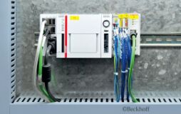 控制柜中的嵌入式控制器與用作人機(jī)界面的倍福控制面板 CP2912 相連
