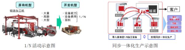 此外,以往的生產(chǎn)方式是在各個工廠進行零部件加工,然后統(tǒng)一運輸?shù)揭黄疬M行總成組裝,如此工廠之間就會產(chǎn)生物流運輸環(huán)節(jié)從而增加成本和時間。而1/N設備的導入不僅將生產(chǎn)占地面積與空間大大縮小,同時還大大提高了設備之間的信息化傳輸,有效提升了整個工廠的運營效率。不僅能減少物流成本和庫存空間,節(jié)約能源同時還可以縮減工期。