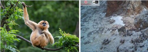 左圖:極瀕危物種海南長臂猿 右圖:紅外相機(jī)拍攝到的高原野生雪豹