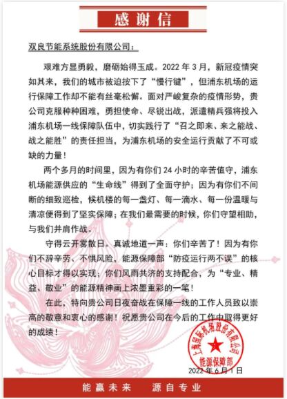 兩個多月的時間里,雙良服務(wù)工程師隊伍 24 小時的不間斷輪流辛苦值守,浦東機場能源供應(yīng)的“生命線” 得到了全面守護;得到了堅實保障;在客戶最需要我們的時候,雙良與客戶并肩作戰(zhàn)。守得云開霧散日,雙良服務(wù)隊伍的不僅以不辭辛勞、不懼風(fēng)險,保障了浦東機場“防疫運行兩不誤” 的核心目標(biāo)才;更以“專業(yè)、精益、敬業(yè)” 的服務(wù)精神與客戶風(fēng)雨共濟,共度難關(guān)。在雙良,對客戶的需求,雙良人用行動踐行“一切以客戶為中心”,行勝于言。