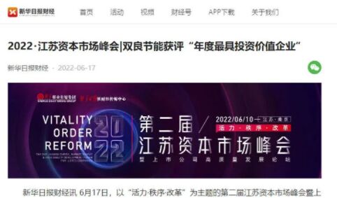 6月17日,以“活力·秩序·改革”為主題的第二屆江蘇資本市場(chǎng)峰會(huì)暨上市公司高質(zhì)量發(fā)展論壇在南京召開。頒獎(jiǎng)典禮上,雙良節(jié)能榮獲“2022年度最具投資價(jià)值企業(yè)”。