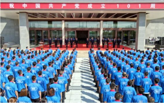 7月1日上午,伴著雄渾壯麗的國歌,迎著燦爛初升的朝陽,一面五星紅旗在雙良硅材料(包頭)有限公司新落成的辦公大樓廣場前冉冉升起,這是雙良紀(jì)念中國共產(chǎn)黨成立101周年的慶祝活動,也是慶祝雙良40GW單晶硅項目一期20GW產(chǎn)能全面達(dá)產(chǎn)的活動。出席活動的有:雙良集團(tuán)董事局主席繆雙大、副主席江榮方,董事長繆文彬、總裁馬培林、黨委書記繆志強(qiáng)等董事會全體領(lǐng)導(dǎo),以及集團(tuán)各職能部門、各大產(chǎn)業(yè)板塊總經(jīng)理,此外還有雙良硅材料(包頭)有限公司、雙良銷售團(tuán)隊以及中化三建等參建單位的代表。