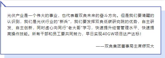 “雙碳”目標(biāo)下,可再生能源的發(fā)展已升至戰(zhàn)略高度,在國家政策持續(xù)發(fā)力與新技術(shù)不斷涌現(xiàn)的背景下,我國光伏行業(yè)迎來高速發(fā)展期。面向未來,雙良將緊抓機(jī)遇,堅持“健康、穩(wěn)定、可持續(xù)發(fā)展”理念,推動光伏新能源產(chǎn)業(yè)穩(wěn)步發(fā)展,打造“世界級清潔能源解決方案提供商”,為“雙碳”目標(biāo)的實現(xiàn)貢獻(xiàn)企業(yè)力量,向著“健康雙良,國際雙良,始終做一家受人尊敬的企業(yè)集團(tuán)”的愿景不斷進(jìn)發(fā)。
