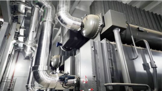 長輸中繼能源站大溫差項目,采用16臺60MW溴化鋰吸收式換熱機組降低零次側熱網(wǎng)回水溫度,熱網(wǎng)回水利用電廠或工業(yè)余熱進行加熱,一個采暖期余熱供熱可實現(xiàn)二氧化碳減排32.75萬噸。