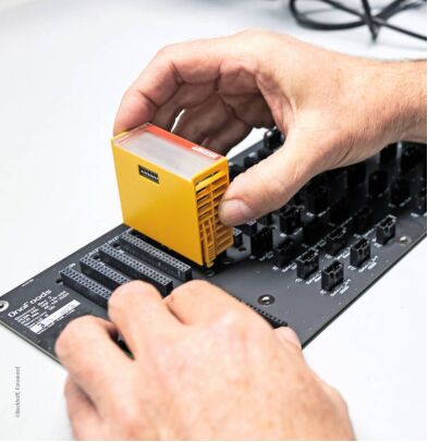 每個 Makeline 模塊都采用了 EJ 系列 EtherCAT 插拔式 TwinSAFE 安全模塊,它們安裝在一個定制設計的 PCB 板(信號分配電路板)上。這些 EJ 插拔式模塊比采用傳統(tǒng)方式接線的 I/O 端子模塊的體積小了大約 50%,此外,它們還可以降低不正確接線的風險。