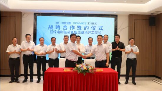 儀式當(dāng)天,雙良節(jié)能與匯川技術(shù)有限公司(簡(jiǎn)稱“匯川技術(shù)”)就綠電制氫簽訂戰(zhàn)略合作,作為工業(yè)自動(dòng)化控制與驅(qū)動(dòng)技術(shù)的領(lǐng)軍者,匯川技術(shù)后續(xù)將與雙良共同研發(fā)高效、智能的功率器件以及電源解決方案,賦能雙良大功率綠電制氫系統(tǒng)。未來(lái),雙方將充分發(fā)揮各自資源優(yōu)勢(shì),創(chuàng)新合作機(jī)制,拓寬合作領(lǐng)域,共同推動(dòng)綠電事業(yè)健康發(fā)展。