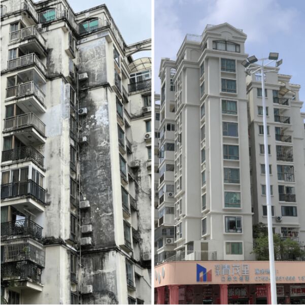 廣東省珠海市某30年高層住宅小區(qū)使用立邦輕質(zhì)真石漆進行翻新改造