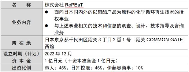 此次,鑒于預(yù)計該授權(quán)技術(shù)會有極大的需求而決定設(shè)立3家公司合資的事業(yè)公司——株式會社RePEaT。