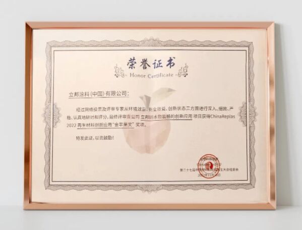 在剛剛結(jié)束的“ChinaReplas2022第三屆塑料回收和再生金蘋果獎(jiǎng)”( 簡(jiǎn)稱“金蘋果獎(jiǎng)”)頒獎(jiǎng)典禮上,立邦憑借防水包裝桶的創(chuàng)新應(yīng)用,摘得再生材料創(chuàng)新應(yīng)用“金蘋果”獎(jiǎng),意味著立邦為塑料污染治理、推動(dòng)塑料可持續(xù)發(fā)展事業(yè)所做出的努力和貢獻(xiàn)的充分肯定。