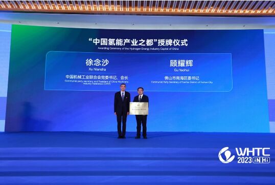 在本屆開幕式上舉行了“中國氫能產(chǎn)業(yè)之都”授牌儀式,中國機(jī)械工業(yè)聯(lián)合會(huì)黨委常委張克林宣讀《關(guān)于授予佛山市南海區(qū)“中國氫能產(chǎn)業(yè)之都”稱號的決定》。徐念沙向佛山南海區(qū)區(qū)委書記頒發(fā)“中國氫能產(chǎn)業(yè)之都”榮譽(yù)稱號。