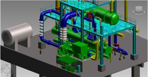 “我們采用了創(chuàng)新的有機(jī)朗肯循環(huán)(ORC)技術(shù),以回收和再利用聚酯主裝置工藝塔產(chǎn)生的102℃飽和聚酯蒸汽,”項(xiàng)目有關(guān)工作人員詳細(xì)介紹,“項(xiàng)目中的ORC發(fā)電機(jī)組采用了五氟丙烷作為工質(zhì)。系統(tǒng)配置包括蒸發(fā)器、兩級(jí)預(yù)熱器、回?zé)崞骱屠淠?可高效回收和再利用聚酯蒸汽的熱量。工質(zhì)在加熱后氣化,然后送入高效徑向離心透平機(jī)做功,進(jìn)而拖動(dòng)發(fā)電機(jī)轉(zhuǎn)動(dòng)并發(fā)電,最后實(shí)現(xiàn)能量的轉(zhuǎn)換。完成發(fā)電后,飽和聚酯蒸汽被冷卻,凝液約50℃后返回聚酯主裝置進(jìn)行循環(huán)利用!