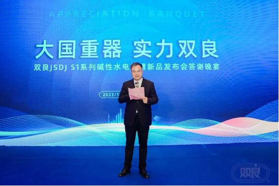▲ 雙良集團(tuán)董事局副主席江榮方介紹雙良JSDJ S1系列堿性水電解槽新品