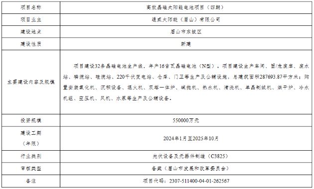 通威太陽能(眉山)有限公司: