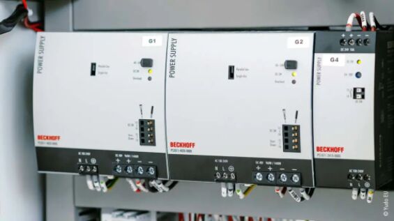 倍福 PS 系列 DIN 導(dǎo)軌安裝式電源確保為安裝有 EtherCAT 插拔式模塊的信號(hào)分配板供電