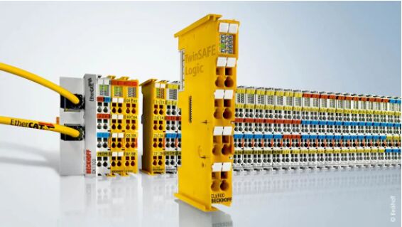 OMR 使用一系列 EtherCAT 端子模塊和黃色的 TwinSAFE 模塊集成安全功能