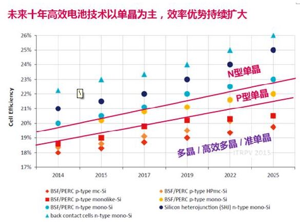 轉(zhuǎn)換效率是領(lǐng)跑者核心標(biāo)準(zhǔn) 對(duì)于領(lǐng)跑者計(jì)劃而言,組件的轉(zhuǎn)換效率無疑是核心要素,領(lǐng)跑者基地建設(shè)要求使用高效組件,并提出了明確的數(shù)據(jù)指標(biāo),其中給出的準(zhǔn)入標(biāo)準(zhǔn)效率為多晶組件15.5%和單晶組件16%;領(lǐng)跑者效率則分別為16.5%和17%,據(jù)業(yè)內(nèi)人士分析,單晶將更容易達(dá)到這一標(biāo)準(zhǔn),而多晶想要達(dá)到這一標(biāo)準(zhǔn),還有一定難度。 在隆基股份旗下樂葉光伏湯應(yīng)輝先生看來,領(lǐng)跑者計(jì)劃要求的單晶17%的效率,其組件標(biāo)稱功率60型要達(dá)到275W,72型則要達(dá)到330W,就國(guó)內(nèi)產(chǎn)能來看,隆基股份旗下樂葉光伏已經(jīng)實(shí)現(xiàn)了量產(chǎn)單晶產(chǎn)品90%以上都能滿足這一標(biāo)準(zhǔn);而多晶16.5%的效率,其標(biāo)稱功率60型要達(dá)到270W,72型要達(dá)到325W,國(guó)內(nèi)產(chǎn)能達(dá)標(biāo)率不足10%。同時(shí),單晶的理論轉(zhuǎn)換效率也達(dá)到25%以上,遠(yuǎn)高于多晶,對(duì)于注重組件效率的領(lǐng)跑者計(jì)劃來說,單晶無疑更具優(yōu)勢(shì)。 未來高效電池技術(shù)以單晶為主 隨著產(chǎn)業(yè)升級(jí)的必要,高效電池市場(chǎng)進(jìn)一步擴(kuò)大,而轉(zhuǎn)換效率更高、長(zhǎng)期收益更好的單晶勢(shì)必將引領(lǐng)高效電池市場(chǎng)。市場(chǎng)趨勢(shì)也證實(shí)了這一點(diǎn),2015年以來,中國(guó)市場(chǎng)單晶組件用量預(yù)計(jì)3.5-4GW,出貨量達(dá)到歷史頂峰。中民新能400MW單晶組件訂單,北控光伏采購(gòu)100MW單晶組件,中廣核太陽(yáng)能的100MW,特變電工的200MW訂單,中環(huán)股份建成了50MW光伏電站……近日,全球最大的單晶硅制造商隆基股份及其旗下樂葉光伏又分別與中民新能、林洋能源、招商新能源、中設(shè)無錫等六家公司簽下9.6GW單晶組件、3GW單晶硅片/電池片的戰(zhàn)略合作協(xié)議巨單,單晶重回高效組件市場(chǎng)主導(dǎo)地位的趨勢(shì)十分明顯。 同時(shí),單晶的長(zhǎng)期衰減低于多晶也已經(jīng)成為行業(yè)共識(shí),雖然仍有人對(duì)單晶的前幾個(gè)月的初始光衰抱有疑慮,但事實(shí)已經(jīng)證明,單晶的長(zhǎng)期衰減性更低、收益更高。對(duì)此,隆基股份系統(tǒng)集成總監(jiān)鄧良平正在通過技術(shù)手段來改善,“我們現(xiàn)在嘗試用有效的辦法來降低硅片的含氧量,這一參數(shù)控制好了,就能夠緩解單晶電池在頭幾個(gè)月的衰減幅度!编嚵计剿鶐ьI(lǐng)的技術(shù)團(tuán)隊(duì)還在從多方面降低單晶硅片的成本、提升效率,“金剛線切割已經(jīng)全面應(yīng)用在單晶硅片中了,工藝的進(jìn)步還在不斷提升硅片的轉(zhuǎn)換效率,為更高效的電池制作打下基礎(chǔ)! 不論從市場(chǎng)趨勢(shì)還是從技術(shù)角度來看,單晶都擁有更加明顯的優(yōu)勢(shì),Bloomberg分析師王瀟婷在統(tǒng)計(jì)分析了多個(gè)主要市場(chǎng)的相關(guān)數(shù)據(jù)后,也表達(dá)了她對(duì)單晶產(chǎn)品未來前景的信心,“五到十年后單晶組件的裝機(jī)比例有可能提升至50%!