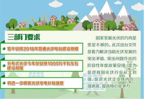 “我國(guó)光伏發(fā)電歷經(jīng)成長(zhǎng)起步、產(chǎn)業(yè)化發(fā)展、規(guī);l(fā)展等階段,當(dāng)前發(fā)展的重點(diǎn)需要從擴(kuò)大規(guī)模轉(zhuǎn)到提質(zhì)增效、推進(jìn)技術(shù)進(jìn)步上來(lái),需要從更有利于健康可持續(xù)發(fā)展的角度,著力推進(jìn)技術(shù)進(jìn)步、降低發(fā)電成本、減少補(bǔ)貼依賴,優(yōu)化發(fā)展規(guī)模,提高運(yùn)行質(zhì)量,推動(dòng)行業(yè)有序發(fā)展、高質(zhì)量發(fā)展!眹(guó)家能源局新能源和可再生能源司有關(guān)負(fù)責(zé)人表示,這是今年及今后一段時(shí)期光伏發(fā)電發(fā)展的基本思路。 記者了解到,近幾年普通光伏電站發(fā)展較快,部分地方出現(xiàn)棄光問(wèn)題。對(duì)于今年的光伏發(fā)電新增建設(shè)規(guī)模,根據(jù)當(dāng)前發(fā)展實(shí)際,明確暫不安排各地普通電站建設(shè)規(guī)模。這既是緩解消納問(wèn)題,也是為先進(jìn)技術(shù)、高質(zhì)量光伏發(fā)電項(xiàng)目留下發(fā)展空間。 在領(lǐng)跑基地建設(shè)方面,2017年國(guó)家能源局組織開(kāi)展了第三期光伏發(fā)電領(lǐng)跑基地建設(shè),共有10個(gè)應(yīng)用領(lǐng)跑基地和3個(gè)技術(shù)領(lǐng)跑基地,合計(jì)650萬(wàn)千瓦!翱紤]領(lǐng)跑基地建設(shè)在促進(jìn)技術(shù)進(jìn)步、產(chǎn)業(yè)升級(jí)、成本下降、補(bǔ)貼退坡上的顯著效果,今年是否再組織領(lǐng)跑基地建設(shè)及安排多大規(guī)模、何時(shí)啟動(dòng),將視光伏發(fā)電規(guī)模優(yōu)化情況再行研究。”該負(fù)責(zé)人說(shuō)。 目前光伏發(fā)電既面臨補(bǔ)貼不足的現(xiàn)實(shí)問(wèn)題,也有市場(chǎng)競(jìng)爭(zhēng)力不足的長(zhǎng)遠(yuǎn)發(fā)展問(wèn)題。為此,下一步將在通過(guò)各種措施推動(dòng)光伏發(fā)電自身建設(shè)成本下降的同時(shí),鼓勵(lì)各地出臺(tái)政策支持光伏產(chǎn)業(yè)發(fā)展,減少非技術(shù)成本,降低補(bǔ)貼強(qiáng)度。對(duì)于不需要中央財(cái)政補(bǔ)貼的光伏發(fā)電項(xiàng)目,地方可根據(jù)接網(wǎng)消納條件和相關(guān)要求自行安排建設(shè)。 光伏發(fā)電價(jià)格機(jī)制調(diào)整后,今年光伏發(fā)電項(xiàng)目上網(wǎng)電價(jià)具體如何執(zhí)行?對(duì)此,記者了解到,本次價(jià)格調(diào)整可以概括為“兩下調(diào)一不變”!皟上抡{(diào)”指的是下調(diào)一類至三類資源區(qū)光伏電站標(biāo)桿電價(jià)各5分、下調(diào)分布式光伏發(fā)電度電補(bǔ)貼標(biāo)準(zhǔn)5分;“一不變”指的是維持光伏扶貧項(xiàng)目電價(jià)不變。 “需要特別說(shuō)明的是,國(guó)家發(fā)展光伏發(fā)電的方向是堅(jiān)定不移的。此次出臺(tái)文件是著力解決當(dāng)前光伏發(fā)展的突出矛盾、突出問(wèn)題作出的階段性年度政策安排,是為促進(jìn)我國(guó)光伏行業(yè)從大到強(qiáng),促進(jìn)光伏企業(yè)練內(nèi)功、強(qiáng)體質(zhì),提高核心競(jìng)爭(zhēng)力!痹撠(fù)責(zé)人表示,對(duì)于今年新增建設(shè)規(guī)模安排,不是要限制光伏發(fā)展規(guī)模,只是對(duì)需要中央財(cái)政補(bǔ)貼的項(xiàng)目?jī)?yōu)化新增規(guī)模。對(duì)于技術(shù)先進(jìn)、發(fā)展質(zhì)量高、不需要中央財(cái)政補(bǔ)貼的光伏發(fā)電項(xiàng)目規(guī)模是放開(kāi)的。
