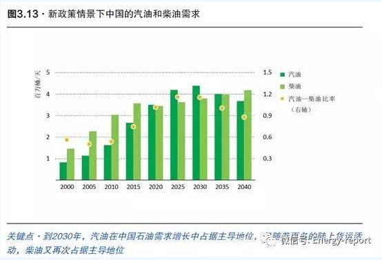 中國成為世界上最大的石油消費國,但不再是世界石油需求增長的最主要來源。中國是石油市場的主力軍,2016年1150萬桶的日均需求量和400萬桶的日均產(chǎn)量之間的差距,使中國成為世界上最大的石油進口國。到2030年,運輸燃料需求的持續(xù)增長意味著中國將取代美國成為世界上最大的石油消費國。到那時,中國的石油需求增長將趨于平緩,預計到2025年以后,印度將成為全球石油消費增長的主要來源。到2040年,中國的乘用車保有量的增長將減緩,四分之一的汽車將是電動車,嚴格的燃油經(jīng)濟性指標將限制其他車輛對油品的消費。預計中國的乘用車油耗將在2030年后下滑。 逐步轉(zhuǎn)換到清潔發(fā)電