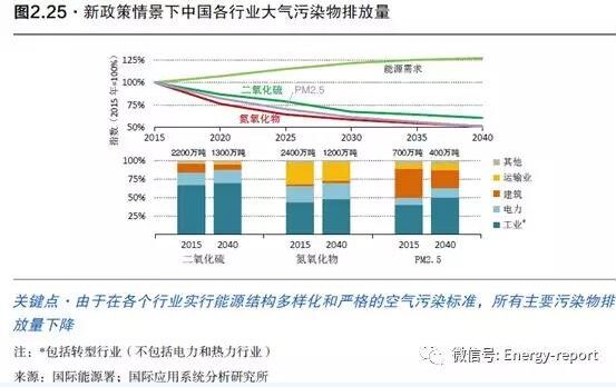中國日益增長的能源需求正越來越多地依賴可再生能源、天然氣和電力;而煤炭需求有所回落。電力和可再生能源需求的增長與中國能源結(jié)構(gòu)的多樣化和清潔化密切相關(guān)。到2040年,煤炭在總發(fā)電量中所占份額將從2016年的三分之二降到40%以下。電力和天然氣需求的增長與工業(yè)和民用部門是密切相關(guān)的,因為這些能源滿足了輕工業(yè)部門的能源需求又契合了人們對空氣質(zhì)量日益增長的要求。中國還將生物質(zhì)能應(yīng)用到工業(yè)中,將太陽能用于供暖以及運用生物燃料運輸,從而增加終端消費行業(yè)對可再生能源的直接利用。到2040年,電力將在中國的終端能源消費中占據(jù)主導地位,到21世紀20年代后期超過煤炭,此后不久將會超過石油。到2040年,天然氣需求量將上升到6000億立方米以上,使中國成為僅次于美國的全球第二大天然氣市場,也是全球天然氣需求增長的最主要來源:在此期間,天然氣在中國主要能源結(jié)構(gòu)中的份額將從不到6%上升至12%以上。與此同時,隨著燃煤發(fā)電的發(fā)電量達到峰值,以及重工業(yè)用煤和居民供熱用煤出現(xiàn)結(jié)構(gòu)性下滑,中國的煤炭需求最終將遠低于2016年的水平。煤炭在中國一次能源結(jié)構(gòu)中的份額將縮減20個百分點,到2040年約為45%。
