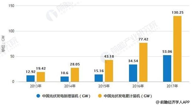 2013-2017年中國光伏發(fā)電新增、累計(jì)裝機(jī)統(tǒng)計(jì)情況