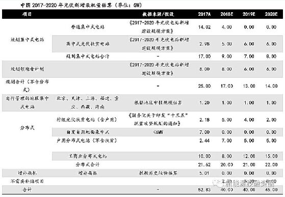 我國光伏裝機(jī)維持高速增長態(tài)勢,2012年我國光伏新增裝機(jī)3.56GW,累計(jì)裝機(jī)7.06GW。2017年我國光伏新增裝機(jī)53.1GW,同比增長53.7%,五年復(fù)合增長率為71.7%,累計(jì)裝機(jī)達(dá)到130.0GW,同比增長66.5%,五年復(fù)合增長率為79.1%。2017年我國分布式光伏爆發(fā)式增長,全年分布式新增裝機(jī)19.3GW,同比增長357%,累計(jì)裝機(jī)達(dá)到29.7GW,占比達(dá)到22.8%。 未來三年裝機(jī)需求回落,分布式、光伏扶貧和領(lǐng)跑者計(jì)劃成為增長主要看點(diǎn)。受17年高基數(shù)及531政策影響,2018-2020年國內(nèi)光伏裝機(jī)需求有所回落,根據(jù)估算,2018-2020年新增光伏裝機(jī)需求分別為40GW、40GW、45GW,合計(jì)約125GW。2018-2020年集中式電站合計(jì)新增裝機(jī)量分別約為17GW、13GW、14GW,分布式電站合計(jì)新增裝機(jī)量分別約為20GW、21GW、22GW,另外,每年自行管理的地區(qū)集中式電站約3GW。新增裝機(jī)之中領(lǐng)跑者計(jì)劃合計(jì)約20GW,光伏扶貧合計(jì)約28GW,分布式(不含扶貧)合計(jì)約52GW。