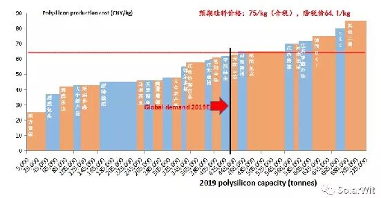 可以看到,要想滿足2019年全行業(yè)的硅料需求,還需要亞洲硅業(yè)、洛陽(yáng)中硅等產(chǎn)能維持運(yùn)轉(zhuǎn)。但是韓國(guó)OCI已經(jīng)在平衡曲線之外,再好的需求都不能挽救韓國(guó)OCI的命運(yùn),命運(yùn)同樣難以逆轉(zhuǎn)的企業(yè)還有賽維LDK、國(guó)電晶陽(yáng)、江蘇協(xié)新外購(gòu)電力部分產(chǎn)能。德國(guó)瓦克雖然也在供求平衡曲線之外,但是由于瓦克相當(dāng)大部分的產(chǎn)能是用于生產(chǎn)半導(dǎo)體級(jí)別的硅料,瓦克的產(chǎn)能不會(huì)輕易退出。