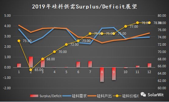 在44.3萬(wàn)噸需求假設(shè)下,2019年硅料供給平衡曲線為: