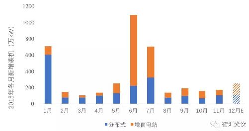 2018年12月20日,中電聯(lián)公布了《2018年1-11月份電力工業(yè)運(yùn)行簡況》,并介紹: 全國基建新增裝機(jī)容量同比減少,其中太陽能發(fā)電和火電新增裝機(jī)減少較多。 1-11月份,全國基建新增發(fā)電生產(chǎn)能力9877萬千瓦,比上年同期少投產(chǎn)1458萬千瓦。其中, 水電713萬千瓦、火電3017萬千瓦、核電596萬千瓦、風(fēng)電1720萬千瓦、太陽能發(fā)電3822萬千瓦。 水電、火電和太陽能發(fā)電比上年同期少投產(chǎn)314、909和1043萬千瓦,核電和風(fēng)電分別比上年同期多投產(chǎn)379和420萬千瓦。 全國太陽能發(fā)電設(shè)備平均利用小時1148小時。 之前15省公布了大量項(xiàng)目要趕在12月底實(shí)現(xiàn)并網(wǎng),考慮到這部分的裝機(jī)規(guī)模,因此,預(yù)期2018年的全年裝機(jī)規(guī)模約為40.5GW,各月的裝機(jī)規(guī)模如下。其中,12月為預(yù)測值。