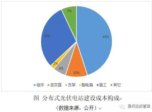 格爾木的建設(shè)成本 光伏項(xiàng)目的運(yùn)維成本和非技術(shù)成本不是影響行業(yè)的主要因素,對(duì)于光伏行業(yè)來(lái)說(shuō)建設(shè)成本是最關(guān)鍵的因素,降低技術(shù)成本是未來(lái)光伏平價(jià)上網(wǎng)的主要驅(qū)動(dòng)力。所以這里不再討論非技術(shù)成本與運(yùn)維成本。當(dāng)然非技術(shù)成本也有降低空間。 我們分解下建設(shè)成本中的各部分細(xì)分成本,這樣我們就可以大概的估算“降本增效”部分為光伏投資成本帶來(lái)的成本下降空間。我們可以參考分布式電站成本一般構(gòu)成,如下圖,組件與施工兩項(xiàng)占比達(dá)75%左右,其次逆變器占成本10%左右。這也基本代表了目前光伏電站一個(gè)普遍的成本構(gòu)成。 我們以表格形式呈現(xiàn)格爾木項(xiàng)目中主要的設(shè)備成本及其他數(shù)據(jù)參數(shù)。