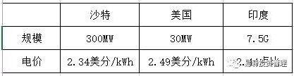 表:各國(guó)光伏項(xiàng)目中標(biāo)價(jià)格