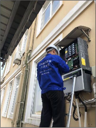 (圖為正泰安能電力系統(tǒng)工程有限公司電站運(yùn)維售后技術(shù)人員正在對衢州市龍游縣湖鎮(zhèn)鎮(zhèn)安裝的俞先生家的電站進(jìn)行維修處理)