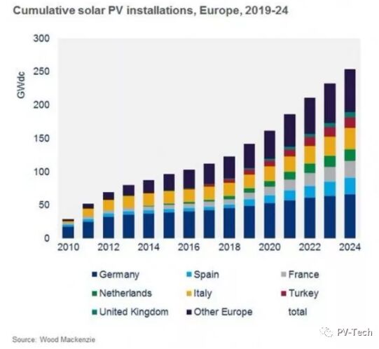 分析發(fā)現(xiàn),飆升的新增項(xiàng)目或會(huì)令全歐光伏裝機(jī)量達(dá)到250GW閾值,高于當(dāng)前不到150GW的裝機(jī)量值。 歐洲正處于從上網(wǎng)電價(jià)計(jì)劃向項(xiàng)目拍賣的轉(zhuǎn)型期,這種發(fā)展趨勢(shì)在此時(shí)出現(xiàn)。僅在去年一年,Wood Mackenzie記錄的中標(biāo)項(xiàng)目就達(dá)到了24GW。 公司高級(jí)分析師Tom Heggarty在一份聲明中討論了同樣的挑戰(zhàn)——無(wú)補(bǔ)貼現(xiàn)實(shí)的影響。無(wú)補(bǔ)貼現(xiàn)實(shí)這一話題主導(dǎo)了今年Intersolar和Solar Media大會(huì)上的討論。 Heggarty表示,在轉(zhuǎn)向企業(yè)購(gòu)電協(xié)議和商業(yè)類項(xiàng)目時(shí),投資方接觸批發(fā)電價(jià)的幾率越來(lái)越高。他補(bǔ)充說(shuō),相互蠶食將成為一個(gè)“日益嚴(yán)重的問題”。 “在發(fā)達(dá)的歐洲電力市場(chǎng),電價(jià)會(huì)跌至30歐元/ MWh以下?稍偕茉雌占奥蔬會(huì)有50%的提升,電價(jià)會(huì)迅速向零逼近。” 這名資深分析師指出,“大部分定價(jià)低的時(shí)段都是在夜間,但隨著太陽(yáng)能市場(chǎng)份額的增長(zhǎng),午間價(jià)格的下跌幾乎確定無(wú)疑! Wood Mackenzie預(yù)計(jì),德國(guó)仍是無(wú)可爭(zhēng)議的歐洲光伏領(lǐng)袖。2019年至2024年,德國(guó)計(jì)劃開發(fā)20GW項(xiàng)目,之后一年,累計(jì)裝機(jī)量會(huì)超過(guò)65MW。 未來(lái)五年,西班牙將新增19GW項(xiàng)目,成為開發(fā)速度排名第二的國(guó)家。從累計(jì)裝機(jī)量角度而言,西班牙幾乎趕上了意大利和法國(guó)。這三個(gè)國(guó)家的裝機(jī)量均介于25-31GW之間。 隨著德國(guó)(54.7歐元/ MWh)、法國(guó)(62.7歐元/ MWh)和其他大型市場(chǎng)的太陽(yáng)能拍賣觸到了價(jià)格里程碑,業(yè)內(nèi)發(fā)出了相互蠶食的警告。 德國(guó)和荷蘭無(wú)補(bǔ)貼光伏發(fā)電的推行速度較慢。從法律上來(lái)說(shuō),在太陽(yáng)能行業(yè)達(dá)到52GW時(shí),柏林必須被迫凍結(jié)政府支持政策。
