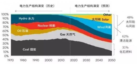 中國(guó)現(xiàn)在是這兩項(xiàng)技術(shù)的世界領(lǐng)導(dǎo)者。 結(jié)果是,中國(guó)正在引領(lǐng)能源轉(zhuǎn)型。還遠(yuǎn)不止這些。在先進(jìn)電網(wǎng)技術(shù)的開(kāi)發(fā)和應(yīng)用方面,中國(guó)遙遙領(lǐng)先于其他國(guó)家,還是全世界最大的鋰離子電池生產(chǎn)國(guó),約占全球產(chǎn)能的60%。去年,中國(guó)企業(yè)安裝的民用核電站比其他任何國(guó)家都多。目前共有300萬(wàn)輛電動(dòng)汽車(chē)行駛在全世界的道路上,其中大多數(shù)都在中國(guó)——中國(guó)占去年電動(dòng)汽車(chē)總銷量的56%。 中國(guó)也將是風(fēng)電和光電的最大市場(chǎng),到2050年,兩者在電力中的占比將從目前的8%上升到48%。中國(guó)的能源排放將在2026年見(jiàn)頂,隨后的20年內(nèi),排放將下降一半。 到2050年,亞洲的電力需求將上升超過(guò)一倍,為了達(dá)到這樣的需求,整個(gè)亞太地區(qū)的能源投資需要達(dá)到5.8萬(wàn)億美元,其中,中國(guó)和印度加起來(lái)就超過(guò)4.3萬(wàn)億美元。 三. 能源改革助力低碳經(jīng)濟(jì) 如果可再生能源的發(fā)展真如《展望2019》所預(yù)測(cè)的一般,那么,《巴黎協(xié)定》所制定的“將本世紀(jì)全球平均氣溫上升幅度控制在2攝氏度以內(nèi)”的目標(biāo)將很有可能實(shí)現(xiàn)。 并且,各國(guó)政府在未來(lái)10-15年將不再需要對(duì)風(fēng)電和光電進(jìn)行額外補(bǔ)貼!靶履茉囱a(bǔ)貼政策的時(shí)代即將結(jié)束!盉NEF首席經(jīng)濟(jì)學(xué)家Elena Giannakopoulou表示!暗需要進(jìn)行能源市場(chǎng)的改革,以保證光電和風(fēng)電有公平競(jìng)爭(zhēng)的機(jī)會(huì)! 當(dāng)然,光靠太陽(yáng)能、風(fēng)能和電池技術(shù)的進(jìn)步,不足以達(dá)到《巴黎協(xié)定》的目標(biāo)。 到本世紀(jì)中葉,風(fēng)能和太陽(yáng)能在多數(shù)國(guó)家的占比將達(dá)到80%以上,但低碳能源的占比如果想超過(guò)這個(gè)比例,就需要其他技術(shù)的幫助,比如核能、生物發(fā)電、碳捕捉等。 因此,彭博提出,各國(guó)政府需要在兩個(gè)方面做出努力:一方面,通過(guò)政策改革保證市場(chǎng)對(duì)于低價(jià)的風(fēng)電和光電足夠友好;另一方面,提前部署能源技術(shù),以保證低碳目標(biāo)的推進(jìn)。 無(wú)論是低碳經(jīng)濟(jì)的大勢(shì)所趨,還是清潔能源本身技術(shù)的飛躍,都在指向一個(gè)有希望的未來(lái)。 從現(xiàn)在開(kāi)始的30年里,光伏等清潔能源在全球能源中的占比將不斷提升,而中國(guó)將是這一次飛躍的領(lǐng)軍者。