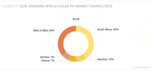 盡管COVID-19疫情給非洲地區(qū)的經(jīng)濟(jì)帶來(lái)了難以估量的影響,但是南非依舊是撒哈拉以南地區(qū)最大的光伏市場(chǎng)。由于電力需求大幅下降(25-40%),一些小型的獨(dú)立電廠項(xiàng)目(IPPs)受疫情挫敗嚴(yán)重。好在,最近一些關(guān)于可再生能源的政治承諾和極具吸引力的監(jiān)管框架,預(yù)計(jì)將推動(dòng)多個(gè)較小的國(guó)家大力發(fā)展光伏發(fā)電,每年新增數(shù)百兆瓦容量,比如贊比亞、埃塞俄比亞、津巴布韋和尼日利亞。