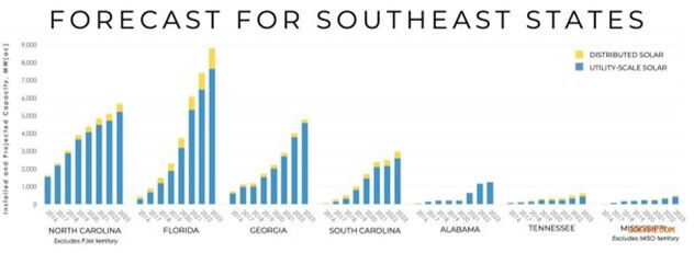 據(jù)南方清潔能源聯(lián)盟(SACE)的一份最新報(bào)告,美國東南部各州的太陽能將在2023年從現(xiàn)在的10吉瓦左右增長(zhǎng)到近25吉瓦。報(bào)告作者Bryan Jacob在近期一次網(wǎng)絡(luò)研討會(huì)中表示,到2023年,太陽能將占該地區(qū)發(fā)電總量的5%。 分布式太陽能預(yù)計(jì)將獲得適度增長(zhǎng)。SACE根據(jù)公開發(fā)布的報(bào)告和專有預(yù)測(cè)得出此次推測(cè)。