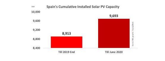 近日,西班牙電網(wǎng)運(yùn)營(yíng)商Red Electrica de Espana(REE)發(fā)布消息稱(chēng),2020年上半年西班牙新增的780MW太陽(yáng)能光伏發(fā)電容量,風(fēng)電新增了446MW容量,這兩種可再生能源共計(jì)增加了1,226MW容量。在此期間,光伏最大新增容容量主要得益于西班牙Iberdrola公司500MW太陽(yáng)能發(fā)電項(xiàng)目的上線(xiàn)。 根據(jù)REE數(shù)據(jù)顯示,至2020年6月太陽(yáng)能光伏發(fā)電量為1,792GWh,年產(chǎn)量增長(zhǎng)92%,光伏發(fā)電量的貢獻(xiàn)創(chuàng)下了新紀(jì)錄。2020年6月,光伏發(fā)電比例占總發(fā)電量的9.2%;1月-6月,太陽(yáng)能光伏發(fā)電量占該國(guó)總發(fā)電量的6.1%。