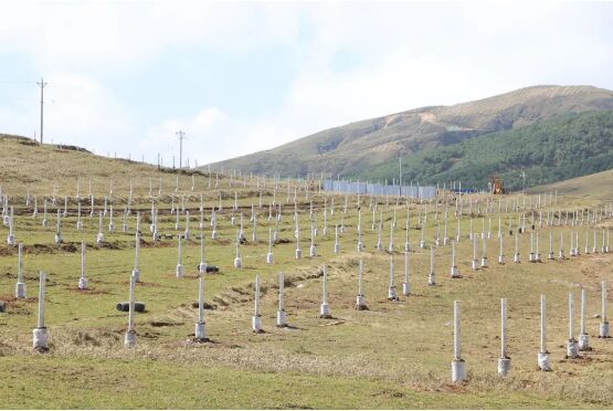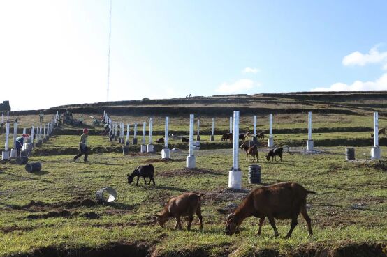 據(jù)了解,巧家縣海壩光伏發(fā)電項(xiàng)目規(guī)劃裝機(jī)總?cè)萘繛?40兆瓦,由三峽集團(tuán)云南能源投資有限公司投資建設(shè),項(xiàng)目規(guī)劃用地5740.18畝,項(xiàng)目總投資為13.47億元,年平均發(fā)電量4.25億千瓦時(shí)。項(xiàng)目已于2021年8月開(kāi)工建設(shè),計(jì)劃于2022年5月全容量并網(wǎng)發(fā)電。該項(xiàng)目為牧光互補(bǔ)清潔能源發(fā)電工程,共布置76個(gè)方陣,每個(gè)方陣布置280組發(fā)電單元,每組由4根灌注樁及28塊光伏板組成,整個(gè)光伏區(qū)共有85120根灌注樁、595840塊光伏板。該項(xiàng)目建成投入運(yùn)營(yíng)后,16%的利潤(rùn)將用于巧家縣鞏固拓展脫貧攻堅(jiān)成果,全面推進(jìn)鄉(xiāng)村振興。