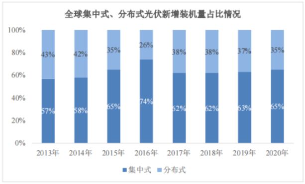 全球集中式、分布式光伏新增裝機量占比情況,據(jù)來源:IEA、方正證券研究所、天風(fēng)證券