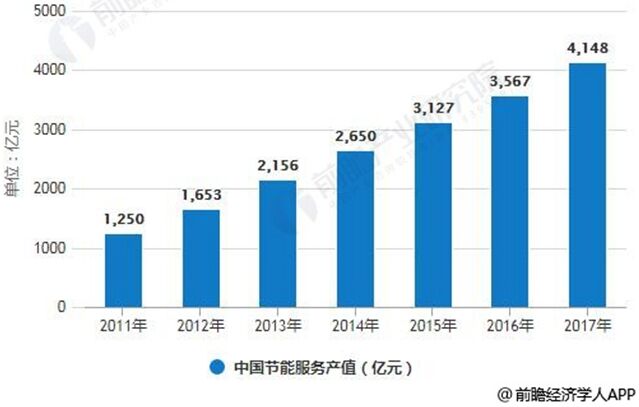 節(jié)能服務(wù)行業(yè)基本概況分析。節(jié)能服務(wù)行業(yè)以各種專業(yè)性的節(jié)能服務(wù)公司為主體,以能源消費(fèi)者為客戶,幫助客戶解決節(jié)能運(yùn)營改造的技術(shù)和執(zhí)行問題,是現(xiàn)代服務(wù)業(yè)的重要組成部分。 節(jié)能服務(wù)項(xiàng)目主要分布在建筑、工業(yè)和交通運(yùn)輸領(lǐng)域,接受節(jié)能服務(wù)的目的在于減少能源消耗、提高能源使用效率、降低污染排放等。 中國節(jié)能服務(wù)產(chǎn)業(yè)產(chǎn)值分析預(yù)測 據(jù)前瞻產(chǎn)業(yè)研究院發(fā)布的《節(jié)能服務(wù)行業(yè)市場前瞻與投資戰(zhàn)略規(guī)劃分析報告》統(tǒng)計數(shù)據(jù)顯示,2017年中國節(jié)能服務(wù)產(chǎn)業(yè)產(chǎn)值達(dá)4148億元,全國從事節(jié)能服務(wù)的企業(yè)6137家,行業(yè)從業(yè)人數(shù)68.5萬人,合同能源管理投資形成年節(jié)能能力超過3800萬噸標(biāo)準(zhǔn)煤,年減排二氧化碳突破1億噸,節(jié)能服務(wù)產(chǎn)業(yè)繼續(xù)保持了良好發(fā)展勢頭。預(yù)計2018年我國節(jié)能服務(wù)業(yè)總產(chǎn)值將達(dá)到4688億元,未來五年(2018-2022)年均復(fù)合增長率約為13.35%,預(yù)測到了2022年我國節(jié)能服務(wù)業(yè)總產(chǎn)值將達(dá)到7740億元。