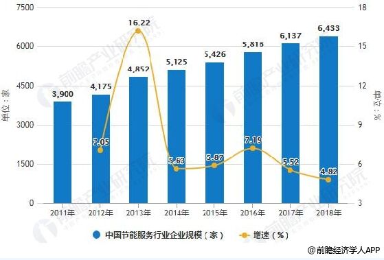 2011-2018年中國(guó)節(jié)能服務(wù)行業(yè)企業(yè)規(guī)模統(tǒng)計(jì)及增長(zhǎng)情況預(yù)測(cè)