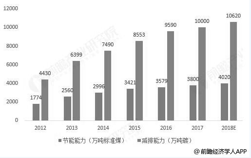 2012-2018年中國(guó)節(jié)能服務(wù)行業(yè)節(jié)能和減排效果統(tǒng)計(jì)情況及預(yù)測(cè)