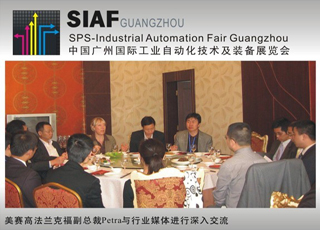11月5日,SIAF GUANGZHOU 的主承辦單位--中國對外貿(mào)易廣州展覽公司、廣州富洋展覽有限公司、廣州光亞法蘭克福展覽有限公司以及德國美賽高法蘭克福展覽有限公司在上海召開了媒體見面會,邀請了國內(nèi)外的自動化行業(yè)媒體出席。美賽高法蘭克福展覽公司副總裁Petra Haarburger女士在會上做了發(fā)言,“SIAF2010中國廣州國際工業(yè)自動化技術(shù)及裝備展覽會”在自動化領(lǐng)域內(nèi)已經(jīng)引起了巨大反響,眾多國際知名品牌紛紛積極報(bào)名參與此次盛會,主辦各方都對SIAF2010的前景充滿了信心和期待。 SIAF GUANGZHOU,即中國廣州國際工業(yè)自動化技術(shù)及裝備展覽會,是全球最大自動化展---“SPS/IPC/DRIVES電氣自動化展”與華南著名工控展---“CHIFA中國(廣州)國際工業(yè)控制自動化及儀器儀表展”在中國的完美結(jié)合。經(jīng)過資源整合,展會將借鑒SPS成功辦展經(jīng)驗(yàn)和營銷模式投入運(yùn)行。