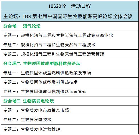 【IBS2019會議倒計(jì)時10天】 IBS2019第七屆中國國際生物質(zhì)能源高峰論壇將于2019年4月11日在上海召開! 【大會議程】 作為行業(yè)內(nèi)極具影響力的生物質(zhì)高峰論壇,每年的IBS都會有來自行業(yè)內(nèi)知名的眾多廠商參展并展示最新的生物質(zhì)科技。那么問題來了,今年的IBS2019論壇又有哪些新變化呢?又將為我們帶來哪些驚喜?接下來,就跟著小編一起來見證IBS 2019論壇的獨(dú)特魅力! 與去年大會相比,IBS2019會完善生物質(zhì)能產(chǎn)業(yè)鏈布局,全力拓展整個生物質(zhì)能源市場現(xiàn)場,將涵蓋生物質(zhì)沼氣、發(fā)電、固體燃料三大領(lǐng)域,涵蓋鍋爐、燃燒設(shè)備,成型燃料及設(shè)備,生物質(zhì)氣化、生物質(zhì)供熱、生物質(zhì)發(fā)電、熱電聯(lián)產(chǎn)等配套設(shè)備,沼氣、生物燃?xì),垃圾處理,生物液體燃料,秸稈利用設(shè)備等。