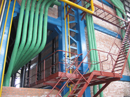 其中鍋爐本體是采用俄羅斯的先進(jìn)技術(shù),燃燒設(shè)備引進(jìn)了美國(guó)萊利公司先進(jìn)的橫梁式鏈條爐排。首臺(tái)樣機(jī)安裝在沈陽(yáng)渾南開發(fā)區(qū),已運(yùn)行多年,經(jīng)省鍋爐產(chǎn)品性能質(zhì)量監(jiān)督檢驗(yàn)站進(jìn)行熱工檢驗(yàn)和省環(huán)境監(jiān)測(cè)中心進(jìn)行環(huán)保監(jiān)測(cè),鍋爐燃燒工況穩(wěn)定,運(yùn)行狀態(tài)良好,平均出力59MW,熱效率83.8%,煙塵初始排放濃度和煙塵排放濃度,煙氣黑度以及二氧化硫排放濃度均符合GB13271—2001標(biāo)準(zhǔn)要求,填充了沈陽(yáng)市大容量熱水鍋爐產(chǎn)品空白,也為其他省市實(shí)行集中供暖的要求提供了方便條件。 |